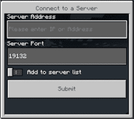 5. Toggle the Add to Server List and press Submit to begin playing on the server.
