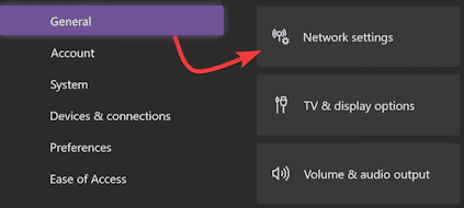 1. Open your Xbox settings, then click General and select the Network Settings options.
